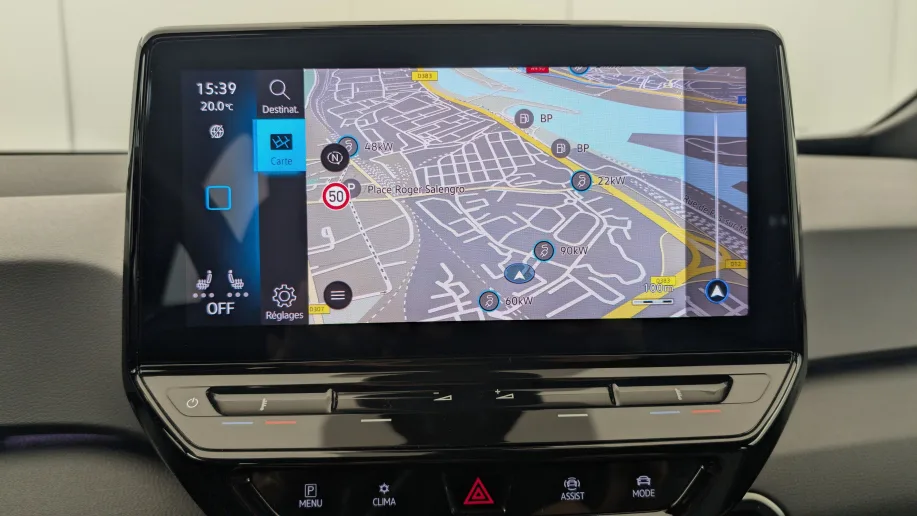 - ID. Display de 5,3 »: L’ID. Display est un combiné d’instruments numérique doté d’un afficheur couleur TFT à haute résolution. En plus du tachymètre numérique, il est possible d’afficher des informations supplémentaires provenant des systèmes d’aide à la conduite, par la sélection de divers profils d’information